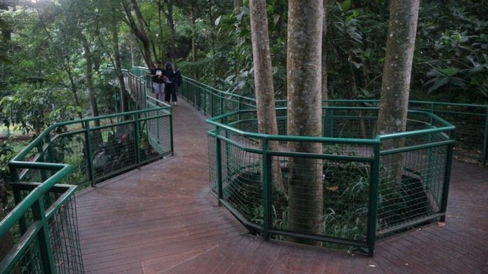 Jakarta - Menjelajahi Hutan Kota Babakan Siliwangi di kota Bandung memiliki sensasi tersendiri dengan adanya Forest Walk. Dari ketinggian 3-4 meter, traveler bisa melihat keindahan alam.Di kota Bandung, terdapat hutan kota yang menjadi salah satu objek wisata favorit pengunjung, baik warga sekitar Bandung maupun wisawatan dari luar kota. Hutan kota ini bernama Babakan Siliwangi.Hutan Kota Babakan Siliwangi dilengkapi dengan forest walk yang membentang di sepanjang hutan kota, sehingga akan memudahkan pengunjung dalam menjelajahi dan menikmati kesejukan hutan kota.Berjalan menelusuri hutan kota diatas forest walk memiliki sensasi tersendiri, sebab pengunjung bisa merasakan menjelajahi alaminya hutan kota di atas ketinggia 3 Γ’β¬β 4 meter di atas permukaan tanah.Pengunjung bisa berjalan berkeliling hutan di atas dek kayu selebar 1,5 meter yang dibatasi pagar setinggi satu meter. Jalur pejalan kaki itu dibuat berkelok menghindar pohon besar.Sementara pohon berbatang kecil yang berada di lintasan jalur dibuatkan lubang sehingga muncul di tengah panel papan kayu.ΓΒ Rangka jalur wisata hutan ini juga dibuat menanjak dan menurun mengikuti kontur tanah sekitarnya.Forest walk diresmikan oleh walikota Bandung, Bp. Ridwan Kamil pada tanggal 17 Januari 2018. Forest walk memiliki panjang 2,2 kilo meter dan diyakini sebagai forest walk yang ada di Asia Tenggara hingga saat ini.Di tengah forest walk terdapat area tempat duduk untuk pengunjung melepas lelah. Jika traveler beruntung, akan bertemu dengan tupai dan burung saat menjelajahi hutan kota ini.Jika malam menjelang, tidak perlu takut, karena hutan kota Babakan Siliwangi dilengkapi dengan lampu LED yang sangat terang dan tersebar sepanjang forest walk.Jika traveler membawa kendaraan baik sepeda motor atau mobil, tidak perlu kuatir akan kesulitan parkir, sebab di bagian bawah forest walk terdapat area parkir yang cukup lega untuk kendaraan pengunjung.Untuk memasuki kawasan ini tidak dikenakan tiket masuk, jika membawa kendaraan pengunjung hanya perlu membayar tiket parkir saja.