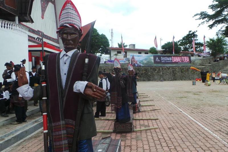 Samosir - Festival Danau Toba 2013 di Pulau Samosir dimeriahkan dengan parade boneka Sigale-gale. Inilah boneka yang dikenal dengan cerita mistisnya karena konon boneka itu bisa hidup seperti manusia.