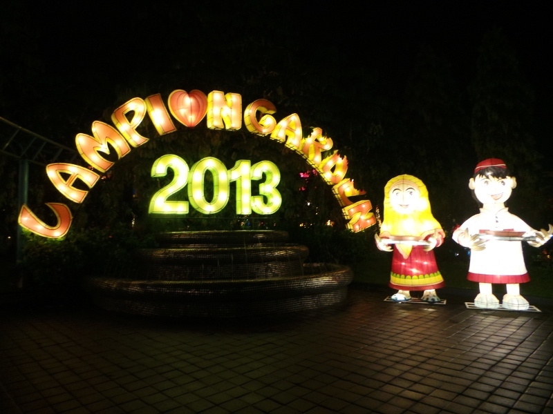 - Dalam gelap malam, bangunan berwarna hijau, merah dan biru tampak bersinar dari kejauhan. Semakin dekat semakin terang cahaya yang terlihat. Inilah Lampion Garden di Batu Night Spectacular.