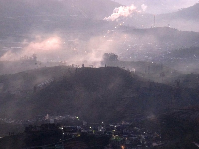 - Telaga Warna, komplek Candi dan perkebunan di Dieng perlahan tertutup kabut. Langit memerah, mentari meredup. Seperti inilah pemandangan saat sore hari di Dieng. Datanglah akhir pekan ini dan buktikan kecantikannya.