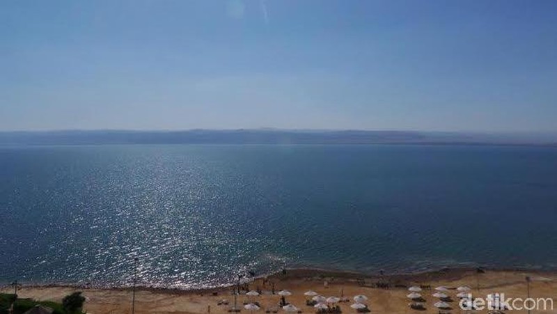 Dead Sea atau Laut Mati berada sekitar 427 meter di bawah permukaan laut. Luasnya sekitar 600 km persegi dengan kedalaman maksimal 304 meter (Madin/detikTravel)