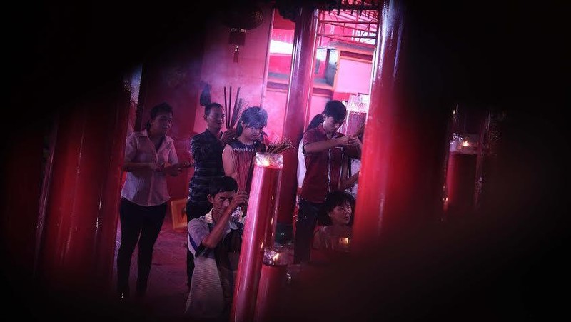 Foto: Ribuan warga etnis Tionghoa bergantian sembahyang ke Kelenteng Ing Hock Khing untuk mengundang kedatangan dewa langit (Chia Thi Kong). Acara bakar tongkang selalu digelar setiap tahun (Hasan/detikTravel)
