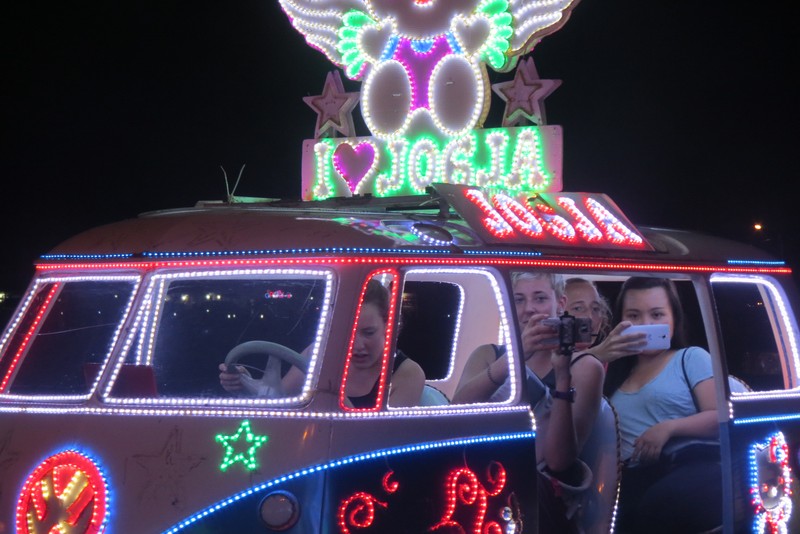 Foto: Turis-turis cantik naik mobil hias di Alun-alun Kidul Yogyakarta. Ini adalah destinasi yang simpel untuk mencari keseruan di Kota Gudeg malam hari (Fitraya/detikTravel)