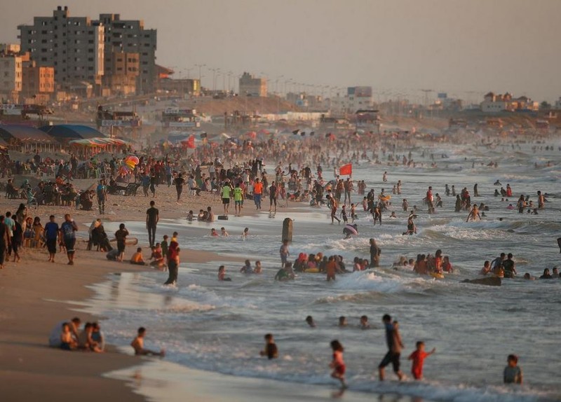 Foto: Liburan bagi warga Gaza di Palestina berarti saatnya pergi ke pantai. Pantai jadi satu-satunya destinasi liburan yang bisa dijangkau warga Gaza karena gratis (Nidal Al Mughrabi/Reuters)