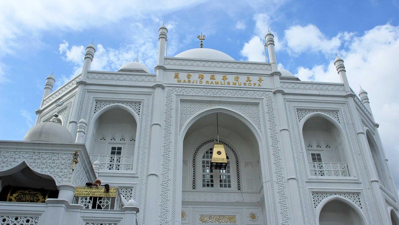 Traveler yang melewati Danau Sunter mungkin pernah melewati bangunan putih bergaya Taj Mahal. Faktanya, itu adalah Masjid Ramlie Musofa yang sempat populer (Randy/detikTravel)