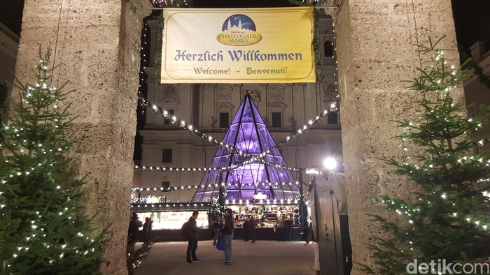 Di Eropa, Natal dirayakan sebulan penuh. Hal itu ditandai dengan dibukanya pasar malam, salah satunya di kota tua Salzburg, Austria (Fitraya/detikTravel)