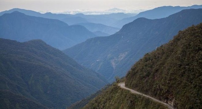 Yungas menghubungkan Ibukota Bolivia, La Paz dengan dataran rendah Yungas yang berada di Hutan Amazon. Untuk sampai di jalur ini, para petualang terlebih dahulu harus melintasi Gunung Cordillera Oriental (Feliipe Abreu/BBC)