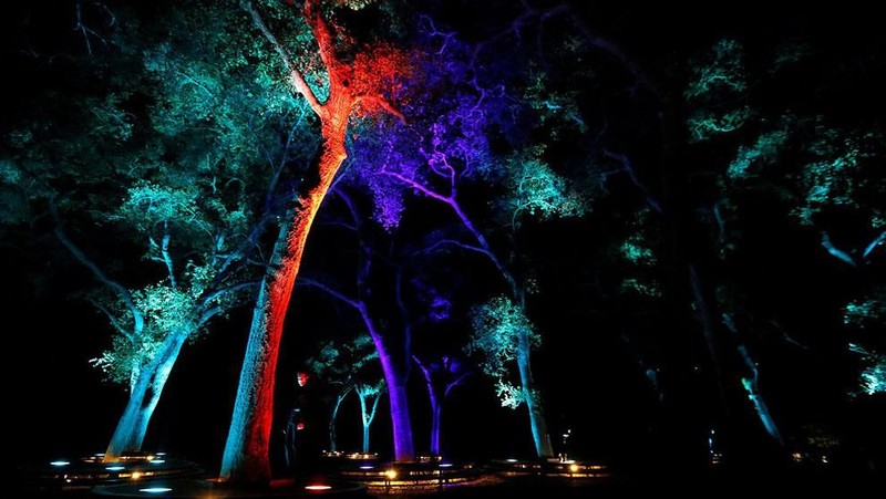 Foto: Pohon-pohon dan tumbuhan di kebun ini diberi pencahayaaan yang dibuat seartistik mungkin. Pengunjung bisa menikmati 10 iluminasi yang diperlihatkan di taman (Mario Anzuoni/Reuters)