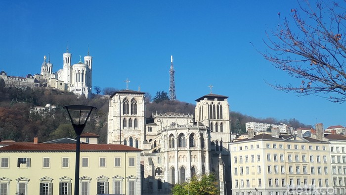Lokasinya di atas bukit, dekat dari La Basilique Notre Dame de Fourviere yang merupakan gereja paling terkenal di Lyon. Dari pinggir jalan pusat Kota Lyon, terlihat jelas karena posisinya di atas bukit (Afif Farhan/detikTravel)