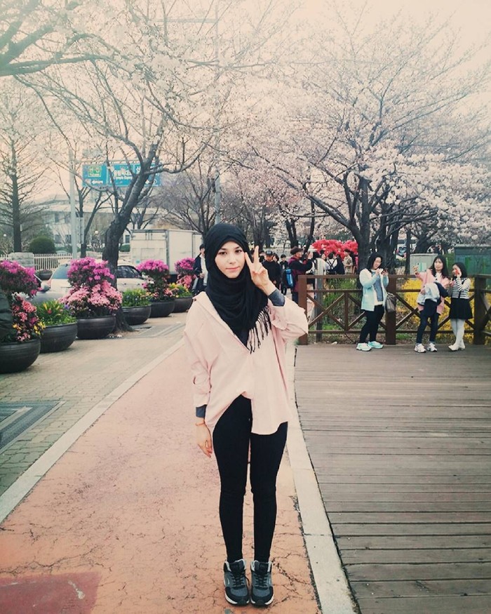Seoul - Nama Kim Miso populer di media sosial sebagai gadis berhijab yang tinggal di Korea Selatan. Mari kita intip gaya gadis cantik ini saat liburan.