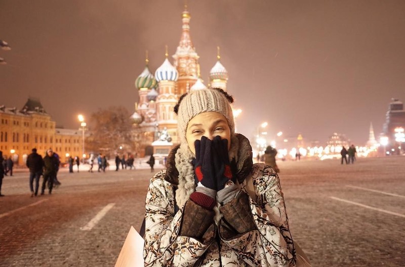 Luna pun tidak lupa mengabadikan kenangan di Red Square. Ini wajah bahagia Luna di tengah dinginnya salju (@lunamaya/Instagram)