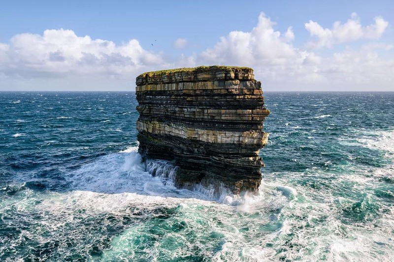 Sementara itu, para peneliti menganggap Dun Briste terpisah dari daratan di tahun 1393 akibat peristiwa alam mungkin seperti gempa bumi. Tebing itu bergeser hingga ke tengah lautan dan tetap kokoh menjulang tingi sampai sekarang (Downpatrick Head/Instagram)
