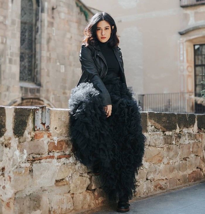 Seoul - Aktris Dian Sastro tampak anggun saat mengenakan pakaian tradisional hanbok asli Korea. Kecantikannya makin bertambah saat berfoto dengan latar bunga sakura.