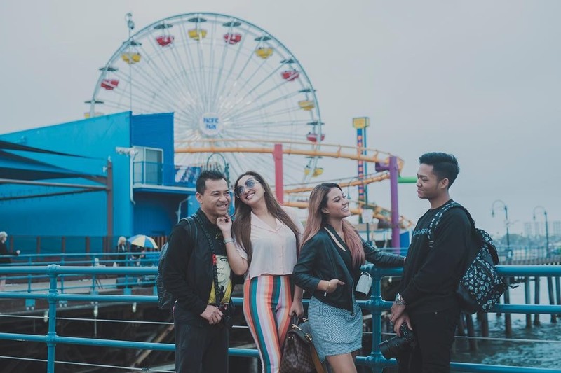 Anang Hermansyah juga foto bersama dengan anak istrinya dengan latar bianglala di Pacific Park. Taman bermain ini berada di Santa Monica. (ashanty_ash/Instagram)