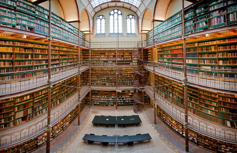 Yang unik, perpus ini direnovasi jadi lebih hidup namun tetap menggunakan konsep awal bangunan. Tangga yang digunakan untuk menjangkau lantai atas masih berbentuk spiral (Rijksmuseum Amsterdam)