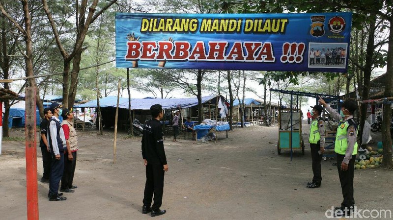 Petugas mengimbau agar pengunjung berhati-hati saat berlibur di pantai dan tetap mematuhi peraturan yang ada demi keselamatan bersama (Rinto Heksantoro/detikcom)