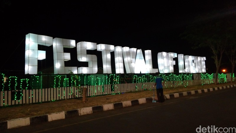 Festival of Light bisa disebut juga taman lampion. Lokasinya berada di area Grage City Kota Cirebon, Jawa Barat. Konsep taman lampion di festival tersebut terbilang unik, lebih menonjolkan hewan purbakala. (Sudirman Wamad/detikTravel)