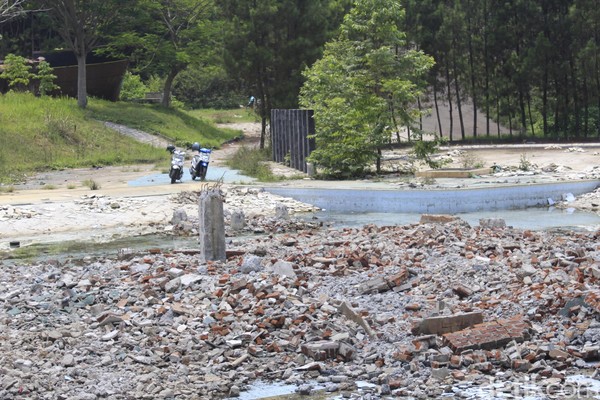 Sejak dibuka pada 2010 lalu, Kampung Gajah memiliki puluhan wahana rekreasi, namun di antaranya yang paling menonjol adalah waterboom dan kolam ombak. Tapi kini, tinggal puing-puing saja (Yudha Maulana/detikcom)
