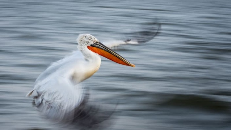 Pemenang keseluruhan kompetisi British Ecological Society 2020 adalah gambar burung pelikan dalmatian yang sedang terbang dan akan mendarat ke air. Karya ini dijepret oleh Alwin Hardenbol.