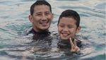 Bersama putranya Sulaiman saat berenang di Pantai Pemuteran, Bali. (sandiuno/Instagram)