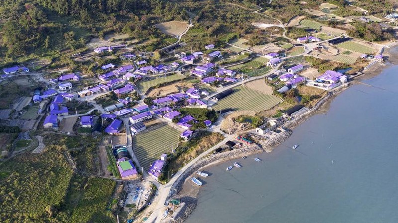 Pulau Banwol memiliki 400 bangunan yang dicat berwarna ungu. (Shinan County Office)