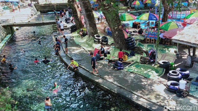 Klaten - Objek wisata Mata Air Cokro (OMAC) di Klaten kembali dibuka. Meski masih uji coba, tak sedikit pengunjung datang ke sana untuk berwisata bersama keluarga.