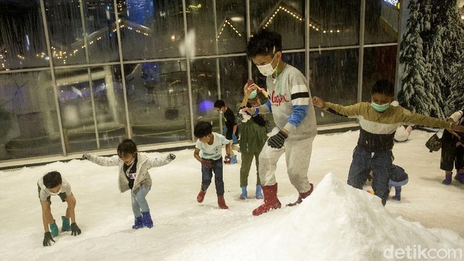 Jakarta - Trans Studio Cibubur ramai dikunjungi warga saat libur Hari Lahir Pancasila. Tak sedikit anak-anak yang antusias bermain salju di wahana permainan tersebut.