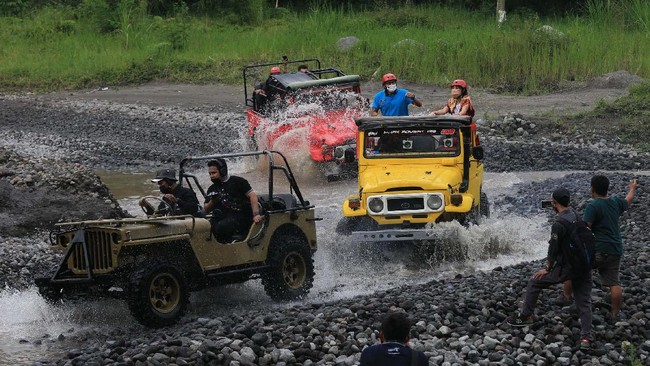 Menteri Pariwisata dan Ekonomi Kreatif Sandiaga Uno menjajal offroad di desa wisata Pentingsari, Sleman, Yogyakarta, Sabtu (5/6/2021) lalu.