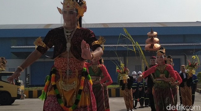 Iringan gamelan Kebo Giro memenuhi areal parkir pabrik gula Rejoso Manis Indo (RMI). (Erliana Riady/detikcom)