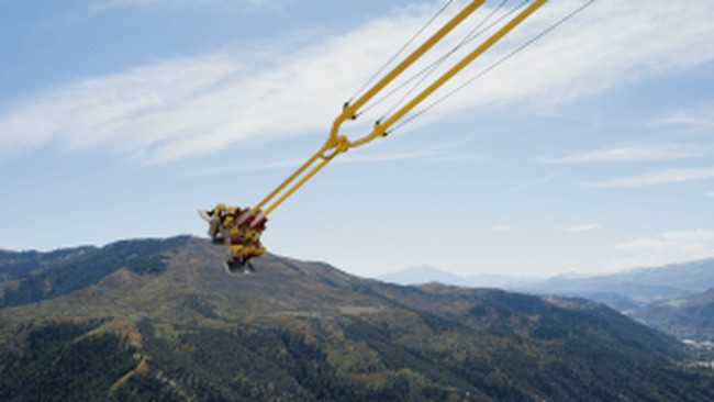 Jakarta - Taman hiburan di Colorado tawarkan pengalaman menarik buat wisatawan pecinta adrenalin. Ada ayunan raksasa yang melintasi tebing.