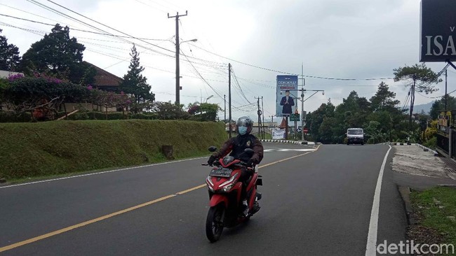 Biasanya, arus kendaraan terlihat padat di kawasan puncak pada akhir pekan. Namun kini terlihat sepi dari pagi hingga sore. (Ismet Slamet/detikcom)