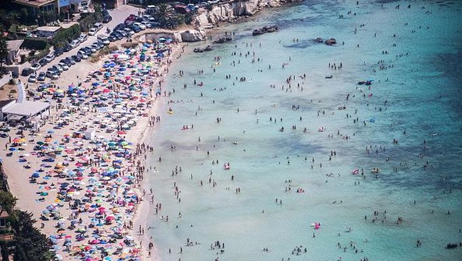 Warga Italia Ngadem di Pantai Gegara Gelombang Panas