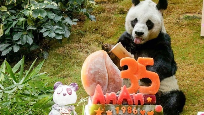 Hong Kong - Seekor panda lucu bernama An An baru saja merayakan ulang tahunnya ke-35. Ada banyak makanan favoritnya.