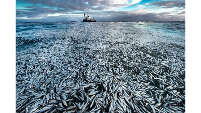 Fotografer Norwegia, Audun Rikardsen, memasukkan foto begitu banyak ikan herring mati dan sekarat yang digunakan sebagai bukti dalam kasus pengadilan terhadap pemilik kapal penangkap ikan.