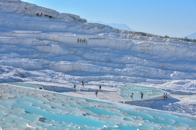 Nama travertine atau pemandian air panas ini adalah Pamukkale. Pamukkale menjadi tempat wisata di Turki yang sangat populer. Menjadi satu bagian dari sejarah di situs Hierapolis, kolam air panas ini ramai dengan kunjungan wisatawan. (iStock)