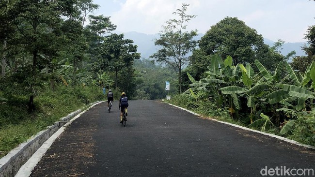 Sentul - Pesepeda melintasi rute menuju Leuwi Pangaduan, Sentul, akhir pekan lalu. Rute tidak terlalu panjang dengan pemandangan lembah ini cocok untuk berlatih climbing