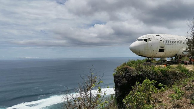 Badung - Warga Bali dikejutkan dengan penampakan pesawat 'nyasar' di tebing pantai Nyang-nyang. Rupanya, pesawat itu bakal jadi destinasi wisata baru. Seperti apa?