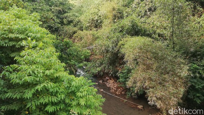 Aliran sungai Cipeles dan pepohonan besar menjadi pemandangan yang ada di lembah jurang Cadas Pangeran.