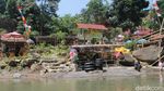 Buat yang sedang tidak ingin mandi-mandi, traveler bisa berfoto di jembatan bambu. Atau duduk-duduk santai di warung-warung bambu di pinggir sungai. (Azril Shiva for detikcom)
