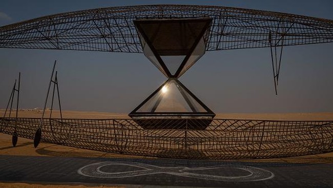 Instalasi Alexander Ponomarevs Ouroboross terpajang di kawasan Piramida Besar Giza, di Kairo, Mesir.
