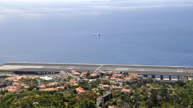 Bandara Madeira di Portugal berada di tepi tebing laut yang curam. Saat cuaca buruk melanda, penerbangan akan dibatalkan (iStock)