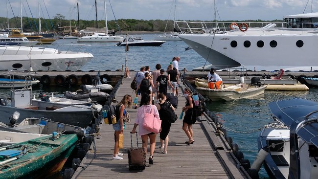 Bali - Sejumlah wisatawan asing kembali datang ke Bali. Penyeberangan menuju ke Pulau Nusa Penida, Gili Lombok dan Labuan Bajo pun terlihat ramai di Oktober 2021.