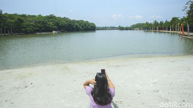 Bogor - Pantai Wana Griya merupakan pantai buatan yang hits di Bogor, sebelum menjadi pantai tempat ini adalah empang lele.