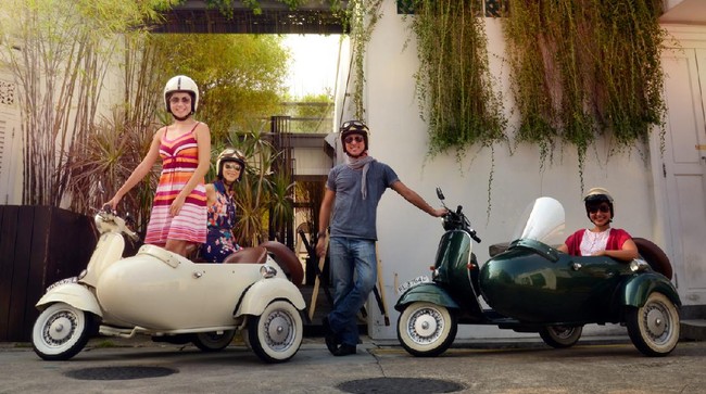 Traveler bisa keliling Singapura naik Vespa dari Operator tur motor Vespa bernama Singapore Sidecars. Durasi tur Vespa ini sekitar satu sampai tiga jam dan pilihannya memutari distrik istimewa seperti distrik belanja Kampong Glam, distrik peranakan Joo Chiat dan Tiong Bahru, dan masih banyak lagi.