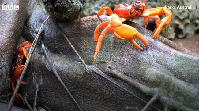 Curah hujan pertama di musim hujan Pulau Christmas Australia jadi waktu untuk jutaan kepiting merah kawin dan bertelur. (Parks Australia/BBC)