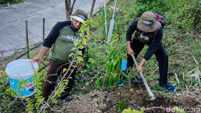 Ketua Kelompok Tani Wono Dadi, Sugito, mengaku senang dengan adanya program penanaman bibit pohon buah-buahan ini di kawasan Gunung Kuniran, Kulon Progo. Diharapkan bibit-bibit pohon bisa berkembang dengan baik dan menghasilkan buah yang melimpah sehingga dapat mendorong perekonomian warga. (Jalu Rahman Dewantara/detikTravel)