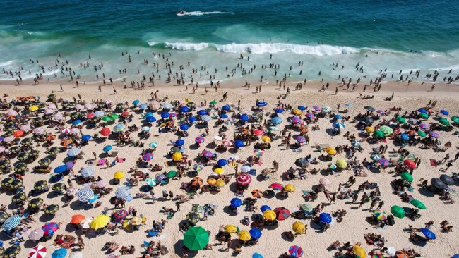 Brasil - Pantai-pantai di Brasil ramai dengan datangnya musim panas. Padahal varian Omicron COVID-19 tengah menyebar ke seluruh dunia, termasuk Brasil.