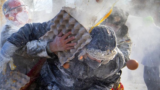 Serunya Saling Lempar Tepung dan Telur di Festival Spanyol