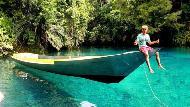 Danau Labuan Cermin merupakan ojek wisata alam populer yang berlokasi di Berau, Kalimantan Timur. (Mahyudin Alkadri/dTraveler)