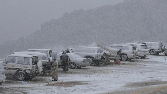 Foto: Pegunungan Tabuk Arab Saudi yang Tertutupi Salju